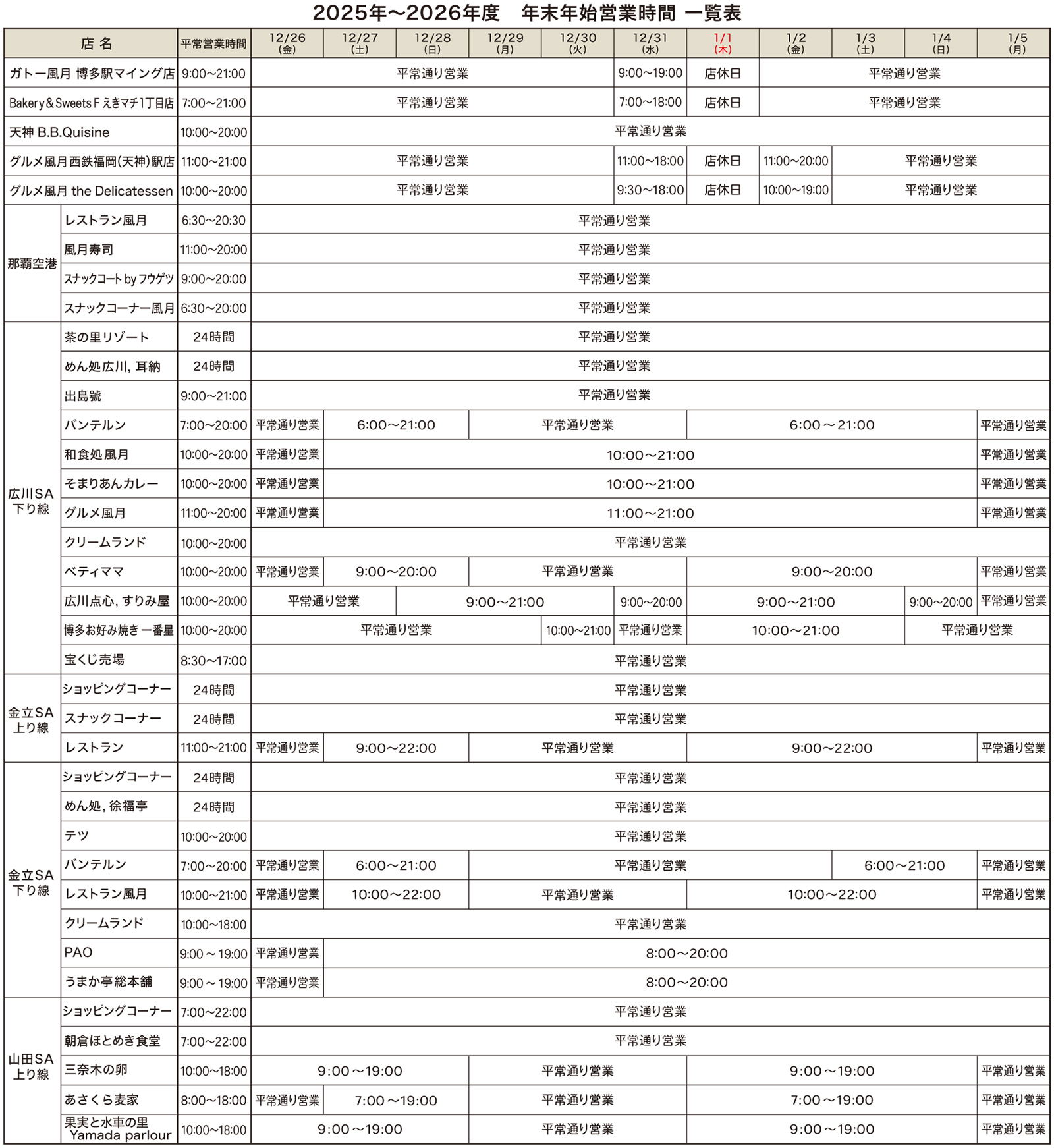 平素より弊社グループの店舗をご利用いただきまして誠にありがとうございます。 年末年始の営業について一部変更がございますのでお知らせいたします。 お客様へはご不便をおかけいたしますが、何卒ご理解、ご了承くださいますようよろしくお願い申し上げます。