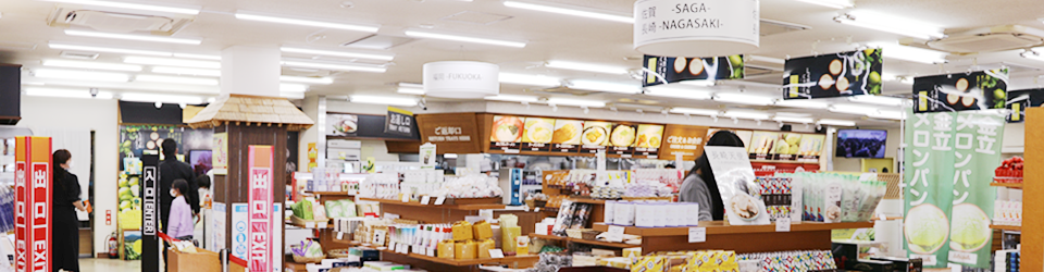 佐賀の特産品(小城羊羹、丸ぼうろ、さが錦、松浦漬など)、また九州各地の土産も数多く揃えております。